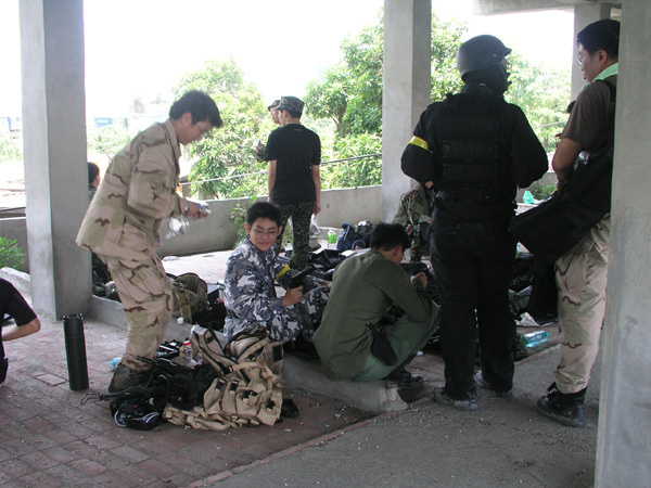 今天是KS-SAS槍隊的訓練,我早上差點爬不起來,好險沒遲到很久。(路上又遇到國中第二次機測的陪考慢速家長車......)大約8:10時大家在左營火車站集合,遇到許久不見的戰友,還認不太出來說。不久在車子就到了考潭養雞場了,我玩過的兩個場地的其中一個,這時另外一個槍隊聯合槍隊先到了,我們比較慢到,煥羽BOSS在我們到後也跟著到了,我們兩個槍隊都差不多15~16人,所以大家決定一起玩。聯合槍對他們有帶自己的測速器,每把槍的初速不可以超過110m/s,這是他們的基本要求,所以我們整譜完也要去測。我發現大家的裝備都越來越好了,連學弟的裝備也不差,只有我還是一個面具跟一把M11,至今還沒有一把電槍,一開始真是讓我有點無地自容,不過還是可以玩的很開心,希望我的技術沒有退步才好。不過我的M11A1竟然有107m/s,真是讓我嚇到。